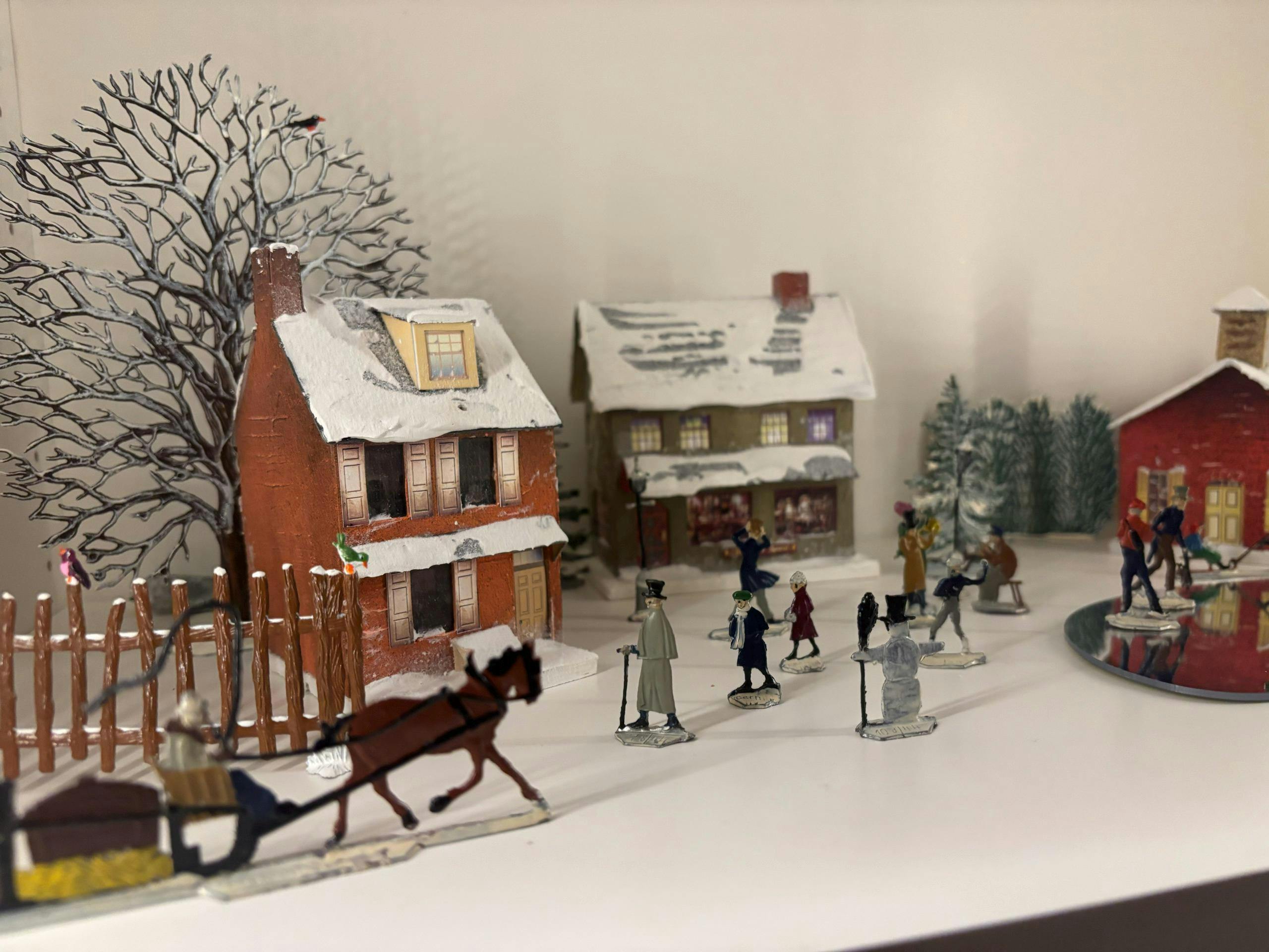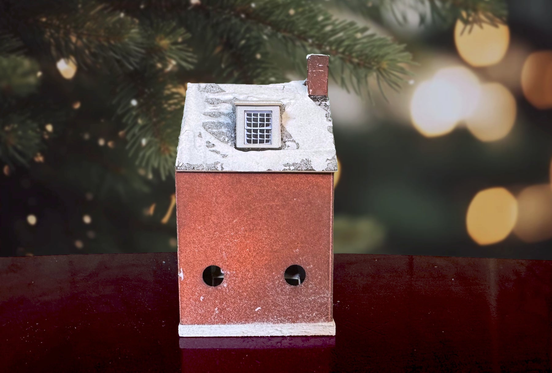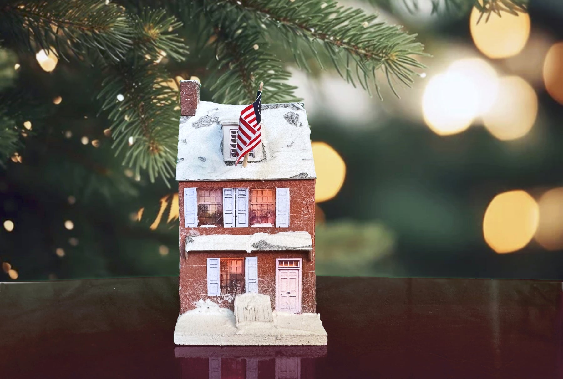 The house was slightly changed in 2025 to reflect a more accurate presentation as it stands today painted in white trim as "white wash" as used in colonial times. It's available in a tea light or standard base option. Both options have the same window scenes.